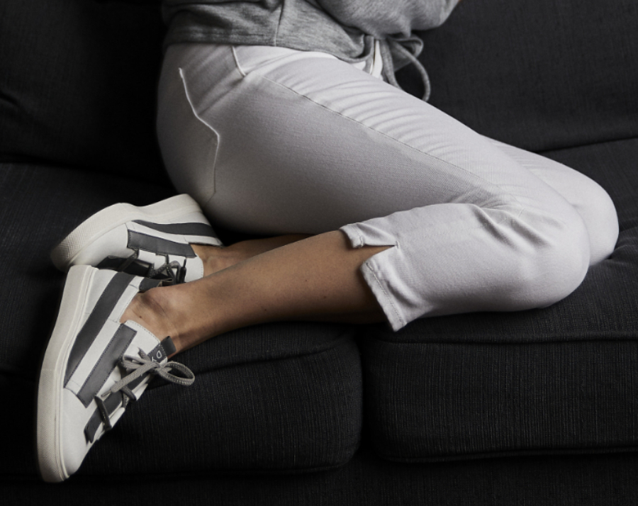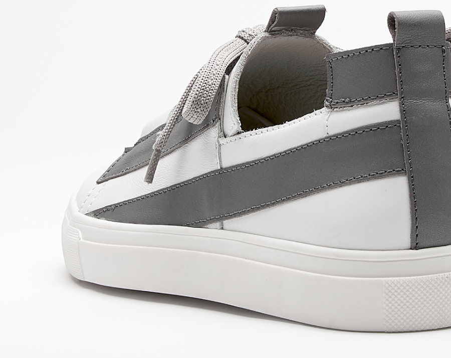 sustainably produced white elastic TR sole made with recycled bottles without compromising flexible durability